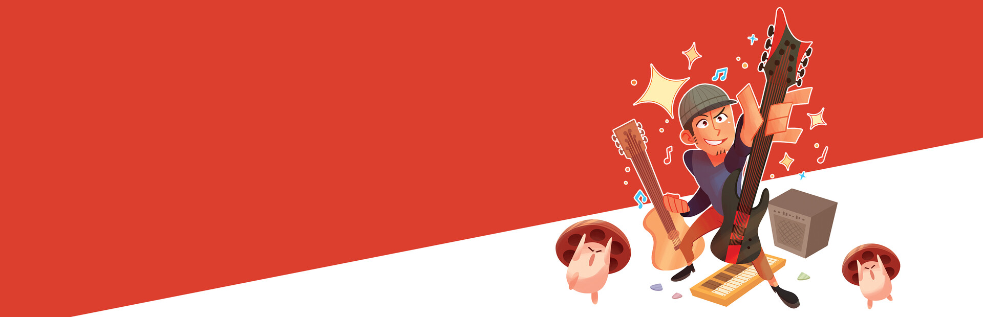 Embark on an adventure with Rob and his zany rock-loving friend to end SMR's plans. Stay alert during your journey: Riffson’s devilish goons, monster-instrument hybrids, and legendary musical animals will try to get in your way!