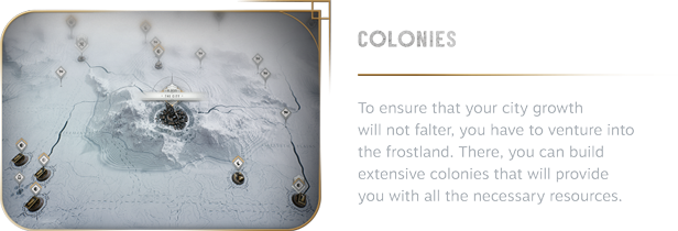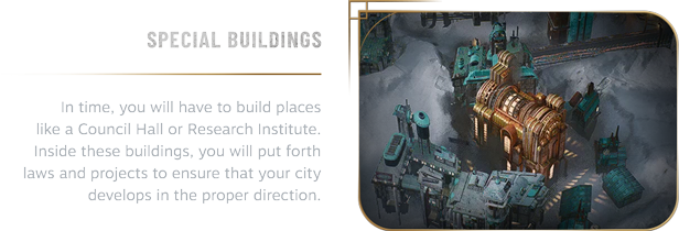 The number of your citizens steadily grows, making the task of governing them and satisfying their demands all the more challenging. As the Steward you will have to maneuver carefully across the interests of many groups inhabiting the city.