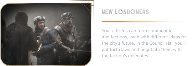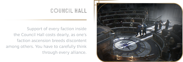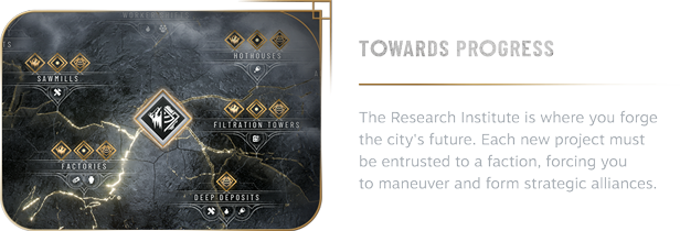 People of your city want to have a voice in how you run things. Each faction has its own ideology and ideas for the future, yet they also have one thing in common - insatiable thirst for power. Choose your allies in the Council Hall wisely.