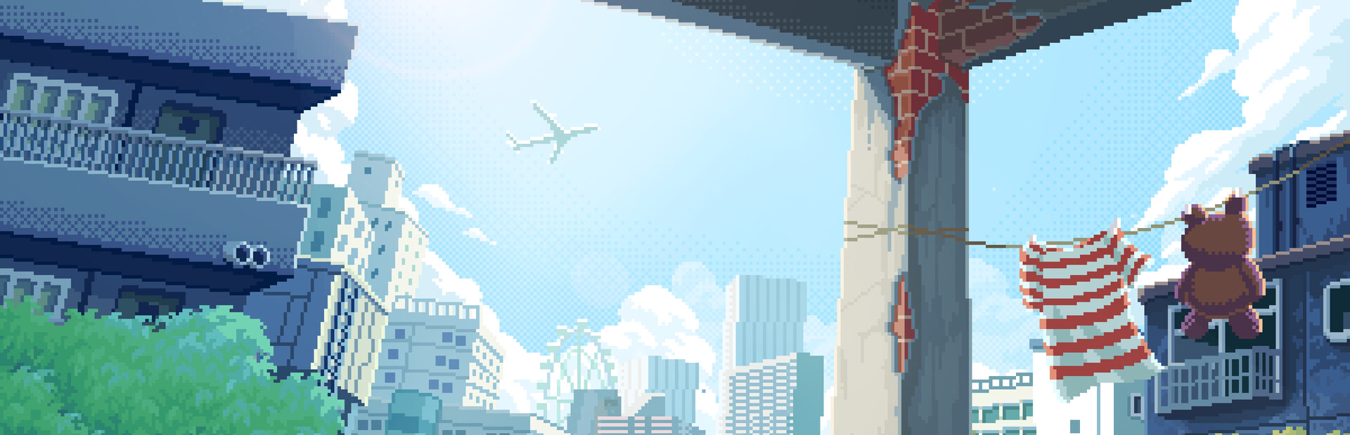 Hand drawn pixels with full details, including vehicles, pedestrians, markets, and flying animals; With a plethora of details, you can immerse yourself in every day of the elevated Luoshandu neighborhood.