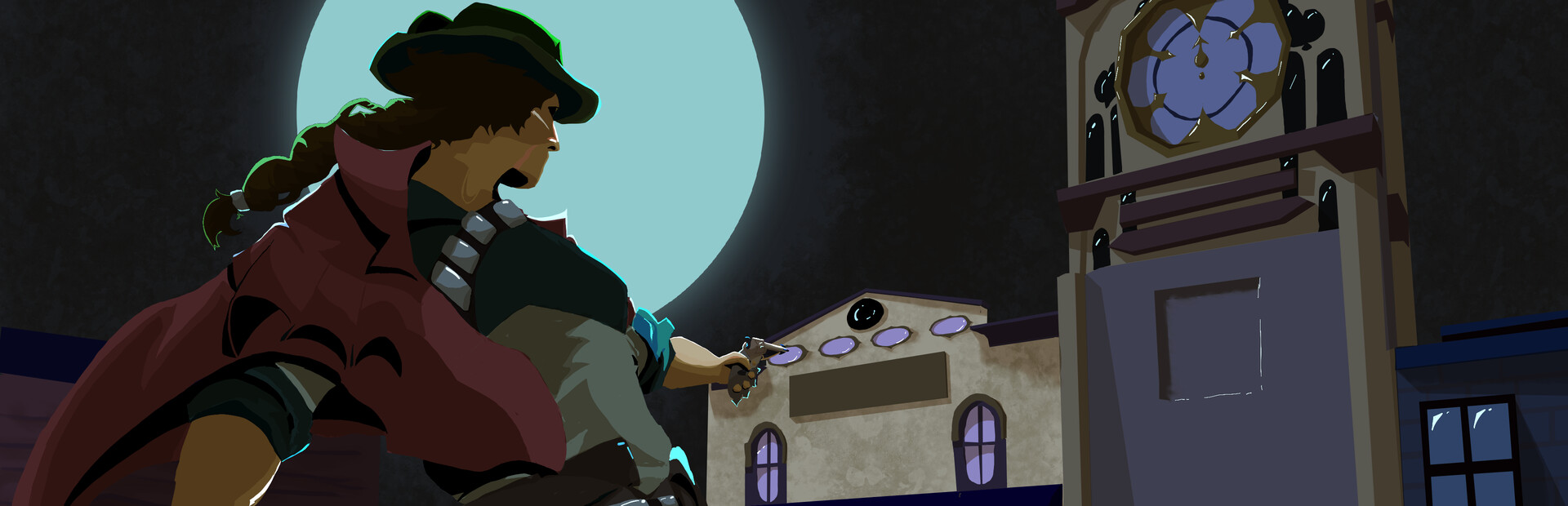 Ghost Moon High Noon is an isometric puzzle shooter. You play as the bounty hunter Valentina Sombra, who barely escaped the deadly clutches of the Rio de Almas and is now set on collecting all of the bounties for herself. The job is simple: armed with your spectral revolver, lasso, and recently-acquired semi-corporeal body, you must put down 12 unique restless spirits that have brought hell to earth. Get to know a large cast of unique townsfolk and ghosts, learning their history and quelling their sorrows, before eventually confronting your own. Blaze your trail through a series of complex environments and puzzles, shooting ricochet trick shots, wrangling your environment with your lasso, and phasing through walls to break through the ghosts' defenses one by one.