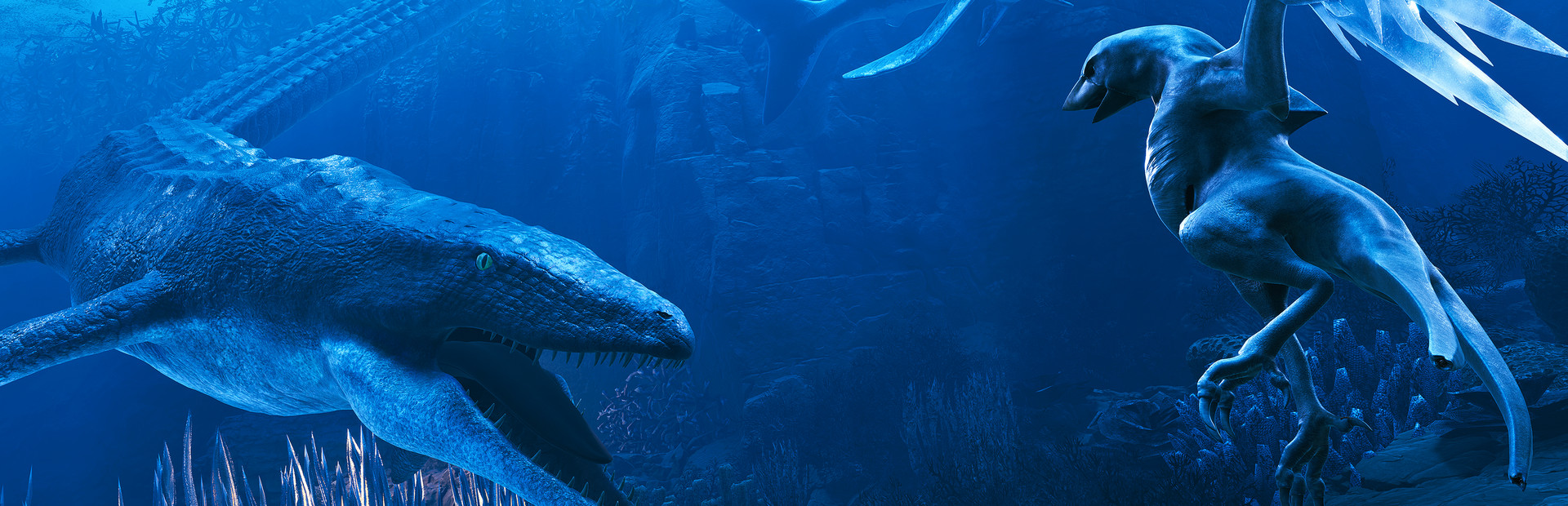 Discover unique ecosystems spread across an ocean Earth 65 million years in the future. Visit grasslands growing from icy skies, swim past schools of thermophilic fish coating the seafloor, and fend off members of the Crocodilia family that have been freed from gravity's grip and grown to enormous size.