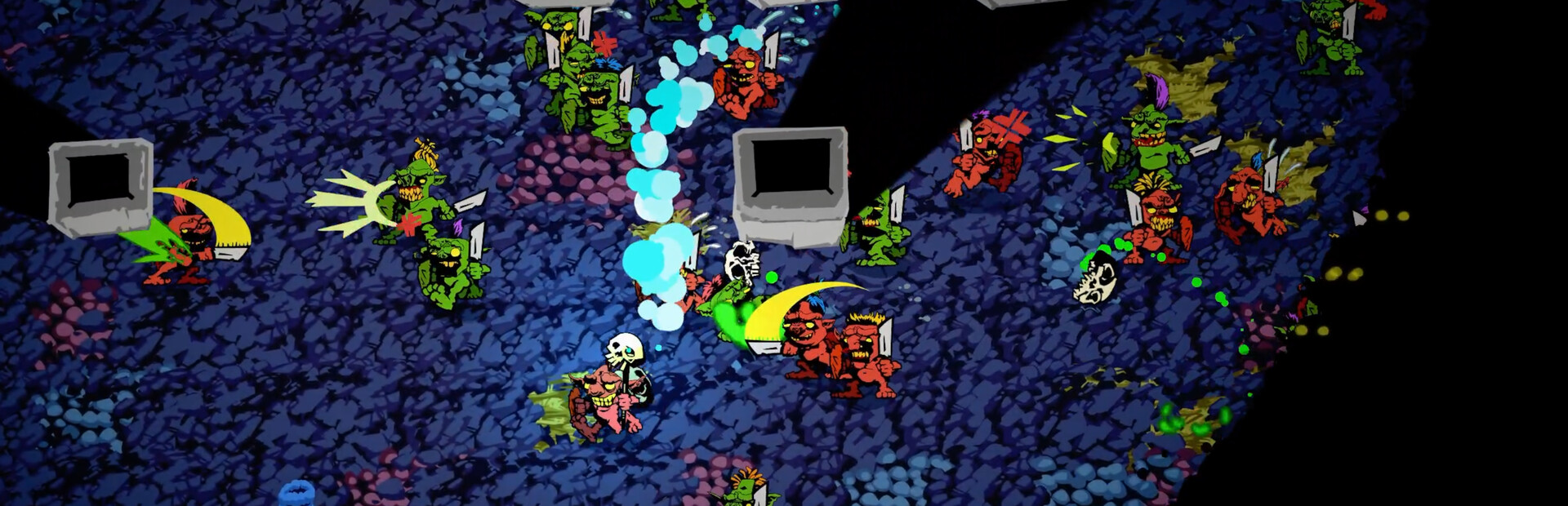 GOBLINS NEVER DIE is a roguelite horde-battler with simple controls, inspired by the likes of Vampire Survivors and Pikmin.
