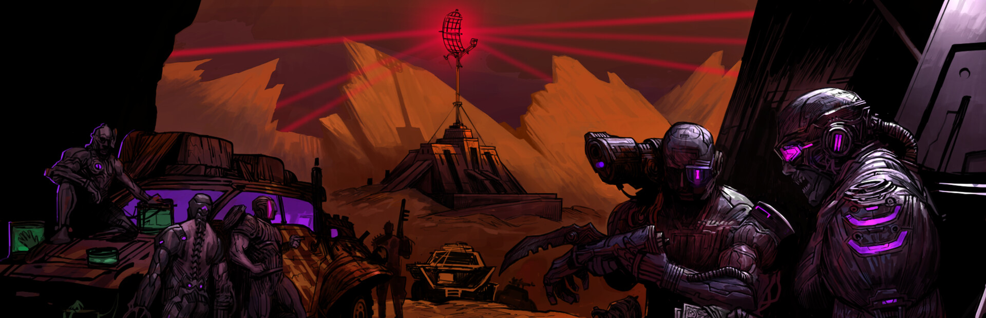 Expand your base to unlock new powers. Increase the mobility of your squads by upgrading their vehicles or craft modules with gathered resources.