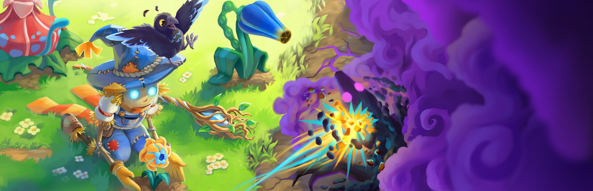 Growing Wild is a cozy third-person tower defense game where you play as a living scarecrow on a quest to restore a corrupted world. Defend magical lands solo or with a friend, combining classic tower defense action with exploration, farming, decorating, and a heartfelt story. This charming adventure blends strategic gameplay with relaxing, creative activities in a vibrant, welcoming world.