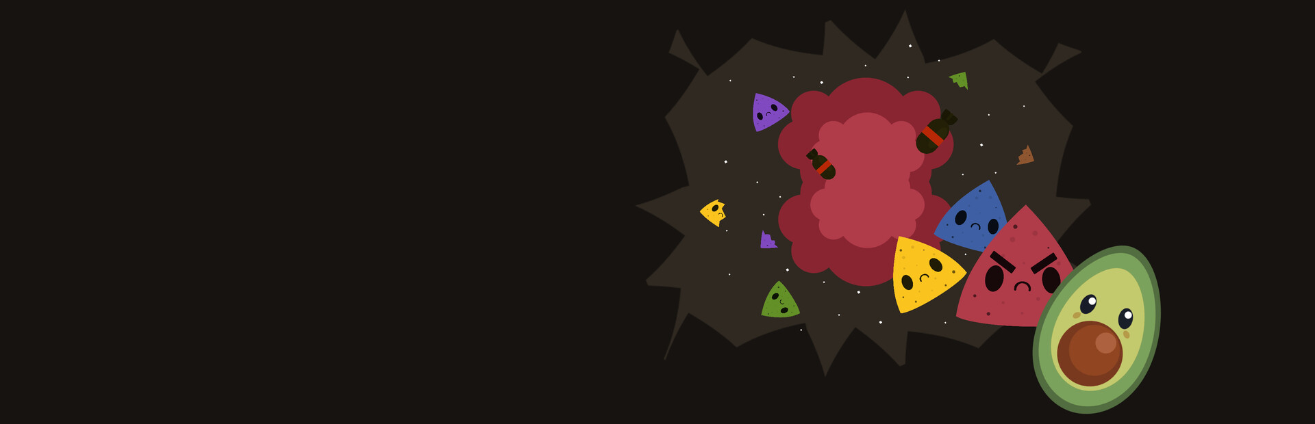 Play as Guaco, the ultimate chip destroyer, with a single bullet. Your bullet bounces off of walls and enemies. Plan your shots carefully, as you need to catch your bullet in order to shoot again. Watch out as bosses will drop chip shards in order to block your escape. If you're lucky, a defeated boss will reward you with an extra life... or even a nuke. Survive as long as you can while increasingly difficult waves of enemies try to overwhelm you.