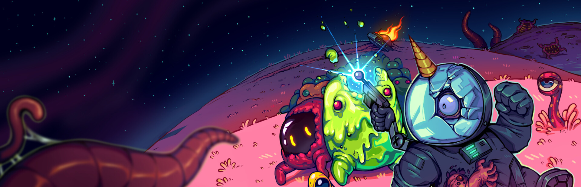 - Face a variety of strange fauna, weird plants, and giant bosses