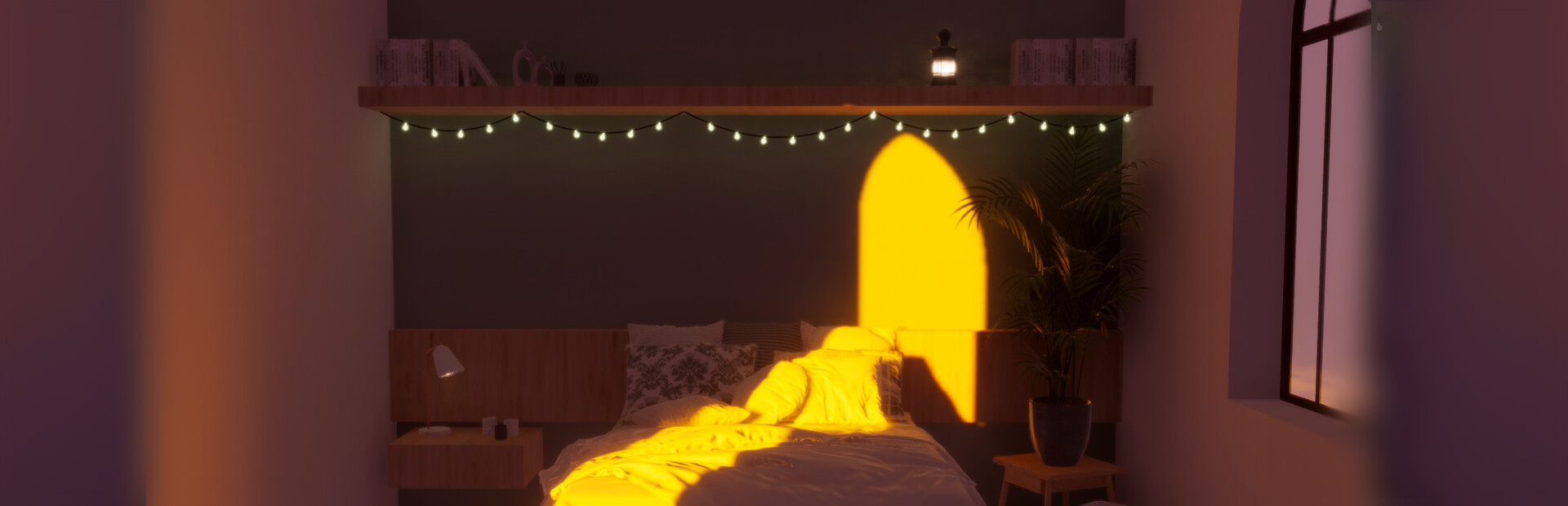 - Create the desired atmosphere with lighting — hang string lights or place bulbs for ambiance