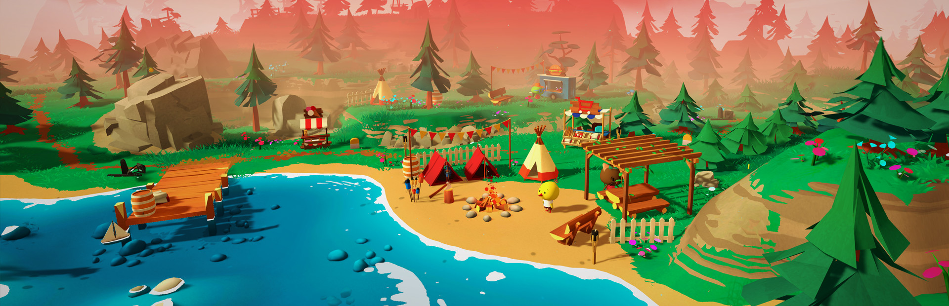 - Explore a tiny and peaceful open world and build cozy campsites at your own pace