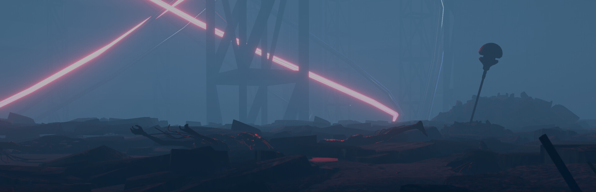 A supernatural Singularity fractures a realistic world, transforming it into a stylized experience of psychedelic horror. Futuristic themes of transhumanism emerge, exploring humanity's confrontation with the unknown in a Lovecraftian fashion. Open environments invite self-expression through a nonlinear adventure shaped by dialogue and conversations with a diverse cast of characters—both beautiful and unsettling. The surreal, atmospheric experience shifts between abstract emotional narratives and intense, dramatic thrillers, evoking a deep sense of nostalgia, perhaps heightened by the ever-present post-apocalyptic landscapes.