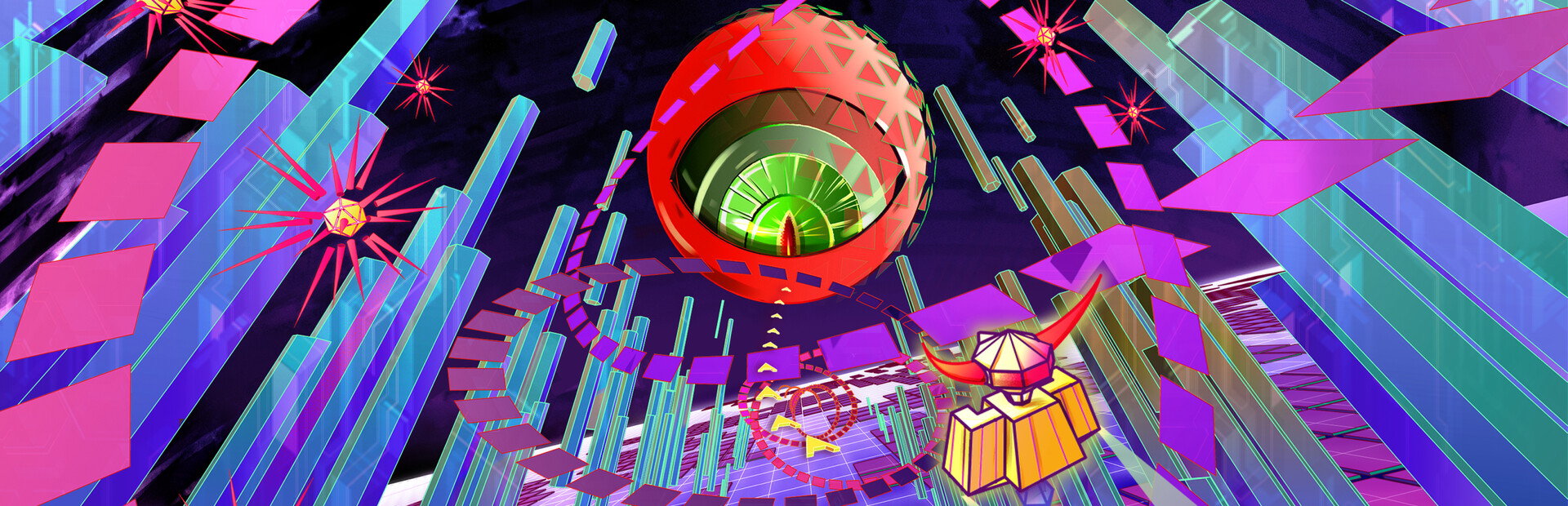 The premise of I, Robot is simple: You take control of an ox-headed robot on a mission to outwit the all-seeing eye. In each level, you’ll navigate across tiles, flipping each tile to proceed to the next. Make sure you don’t jump while the eye’s watching, or you’ll be zapped away in a flash. If you make it across the tiles, you’ll race down a tube blasting away any enemy shapes that move into your path and try to stop you. And you have to do all this inside of the 3D space of Minter’s kaleidoscopic visualizer.