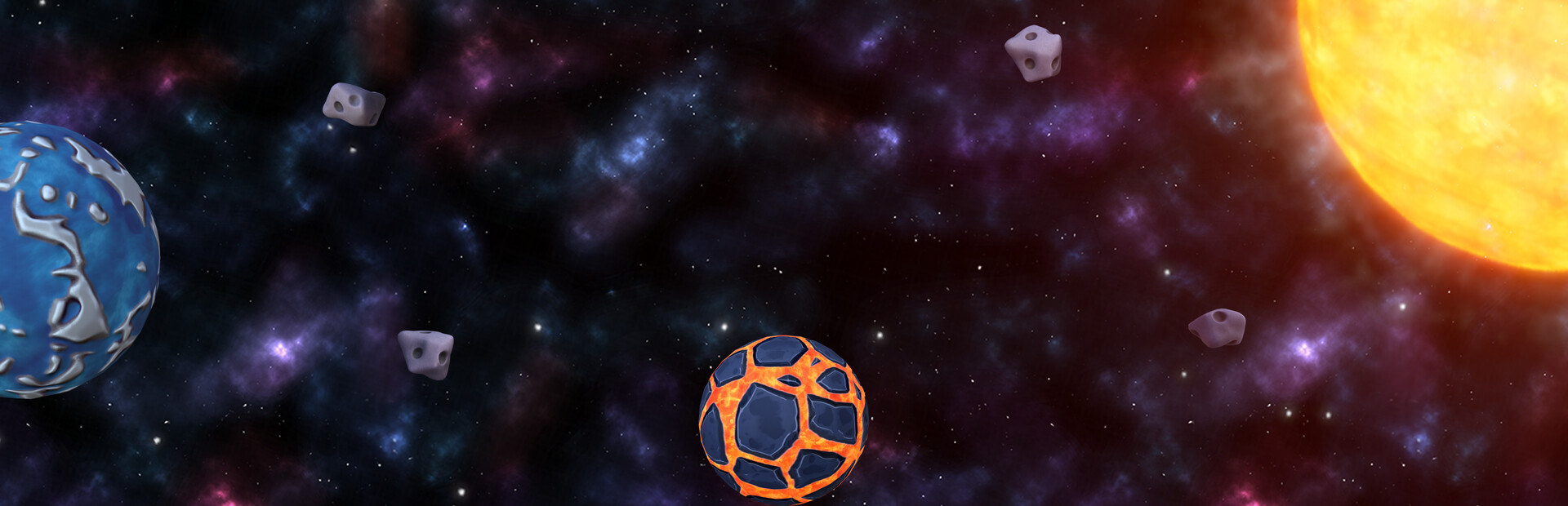Starting as an innocent asteroid your goal is to evolve and progress to larger stages. Collide with smaller asteroids and evolve to the planet stage.