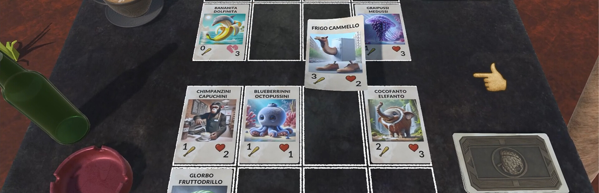 Italian Brain Rot Simulator is a chaotic PvP card game where logic goes to die and nonsense reigns supreme. Build your deck from a growing collection of bizarre, iconic, and possibly cursed characters, then face off against other players in matches where anything can happen — and probably will.