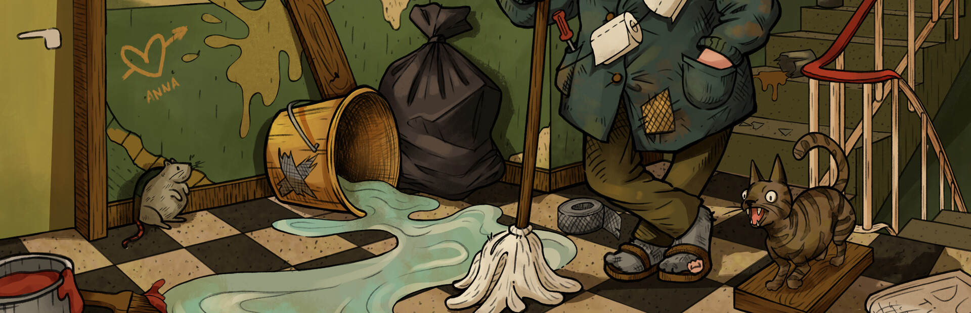 Congratulations! You’ve just been promoted to the rank of Resident Janitor™ in a glorious multi-floor concrete block full of... opportunities.