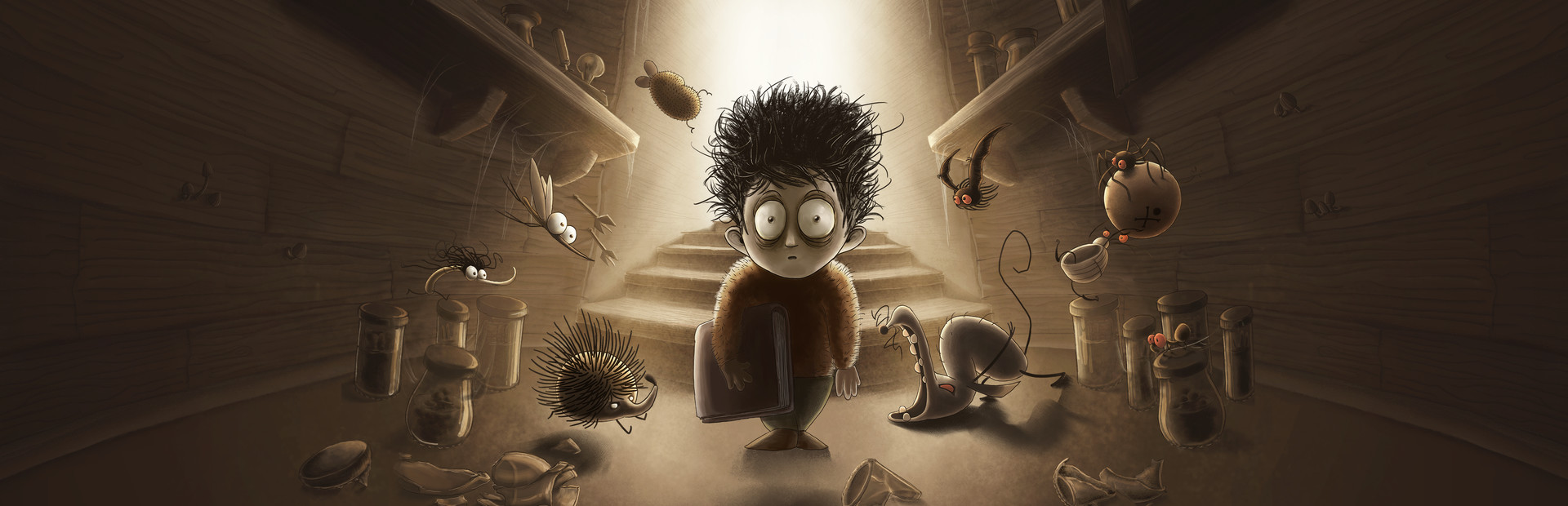 Join Victor's bizarre adventure in the family basement. Discover enormous minions and dangerous nasties hidden in the shadows of the cellar. What shady secrets are buried under the house? Why are some pages in this mysterious book missing? And why the heck is there a Dracula in the basement?! The fate of the world rests on Victor's skinny shoulders! Will you save the world or get grounded by mother?