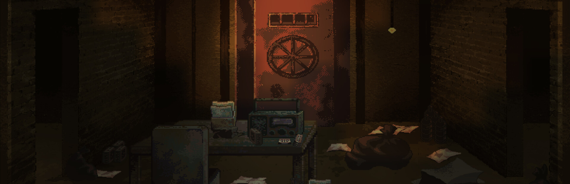 Pixel art aesthetic: A stylized, minimalist approach to visuals that enhances the tension and surreal atmosphere of the bunker.