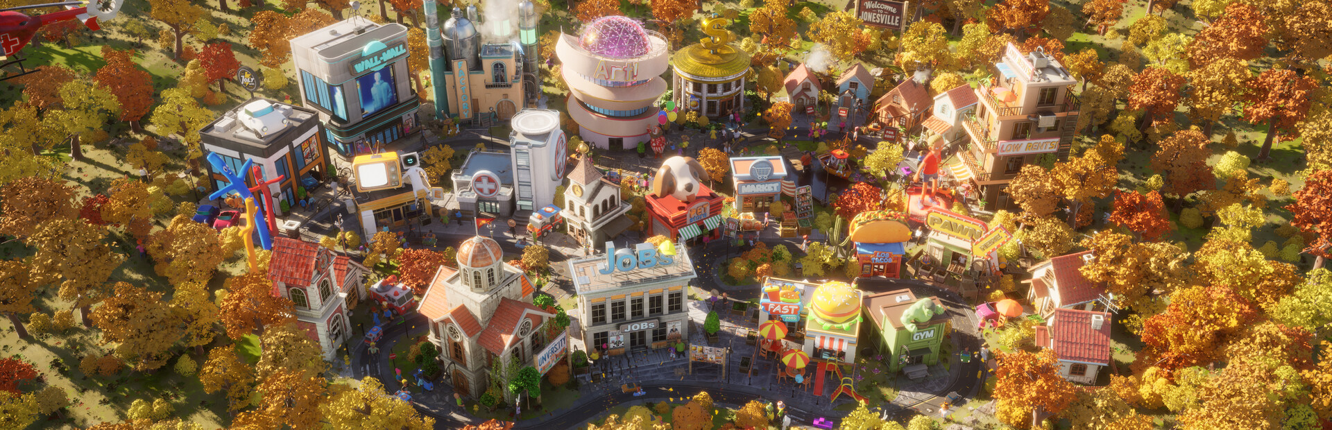 Explore a vibrant map filled with essential locations: job office, bank, mall, university, market, pawn shop and more!