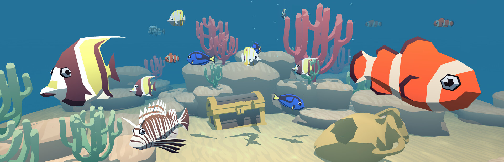 Build your oasis: unlock and place decorations, and enjoy fish interacting with them.