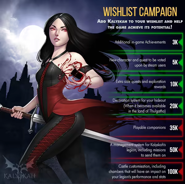 Confused and alone, after waking from a millennia of slumber,", Kalyskah sets on a journey to rebuild her lethal army and hunt down the culprit that sent her into this deep sleep. As Kalyskah, you must make allies with sorceresses, orcs, and humans to fight and regain the power you once wielded.