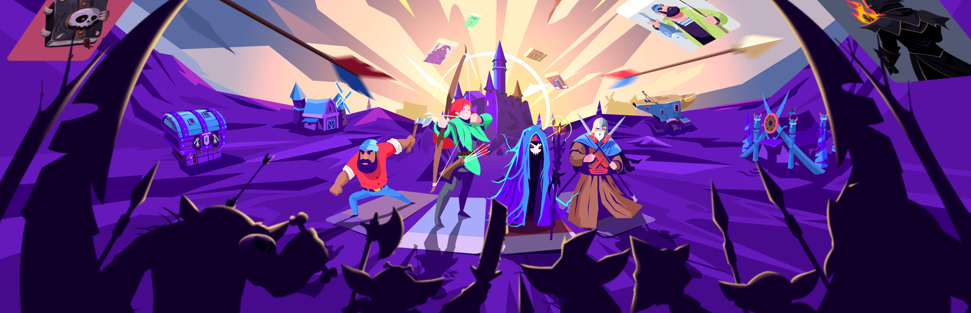 Combine cards to craft tools and weapons to create different units. Farm your lands with farmers, send an explorer to a cave, a thief to steal a mansion or soldiers to conquer a town. Manage your resources to create the best units to defeat every boss.