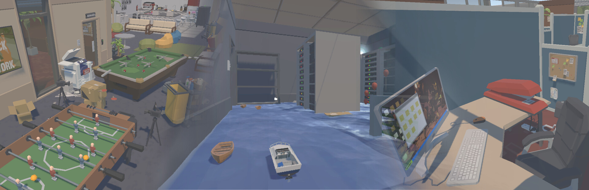 - Pass through various obstacles set in the office!