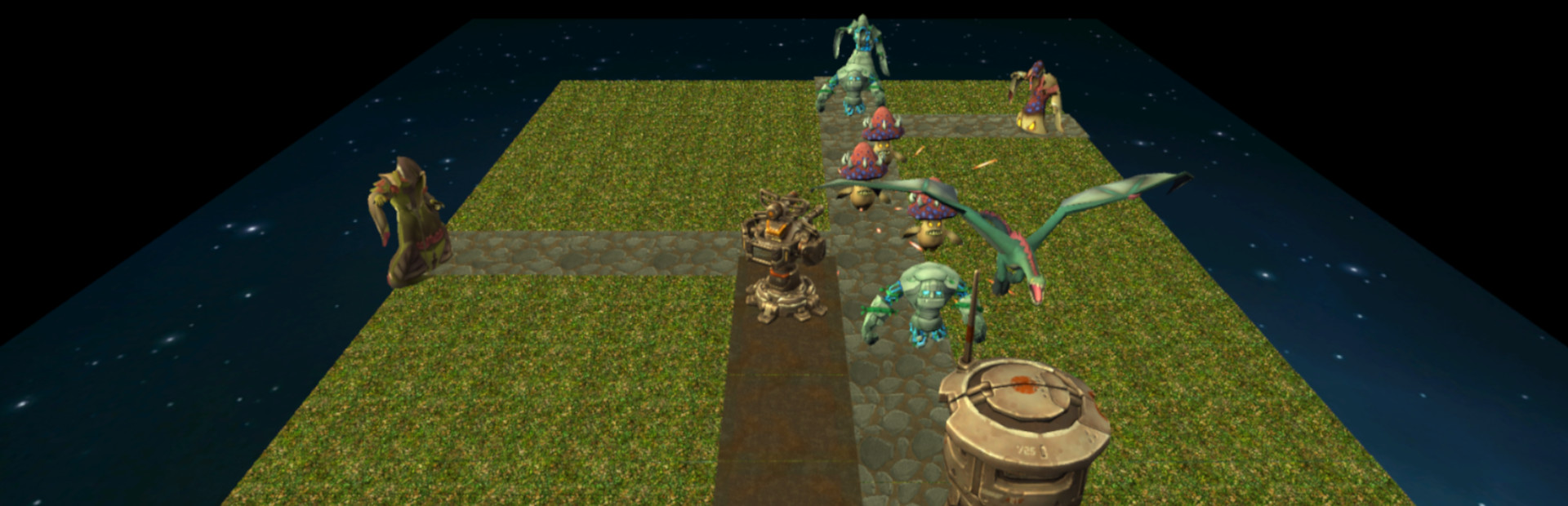 Kirkileons is a single player Tower Defence game. The game includes 2 planets containing 20 missions each(40 missions). The game relies on an original spawning