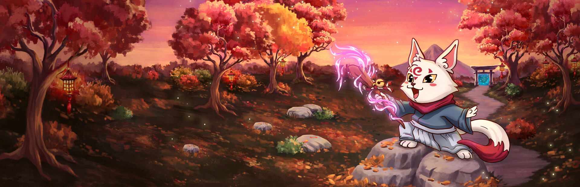 A fox guardian of the forests, responsible for protecting the portal that guides benevolent spirits to the next spiritual plane. Use your magical powers, speed, and wits to activate the turrets you'll find along the way, preventing demons from crossing the portals, and gradually becoming the legendary nine-tailed fox.