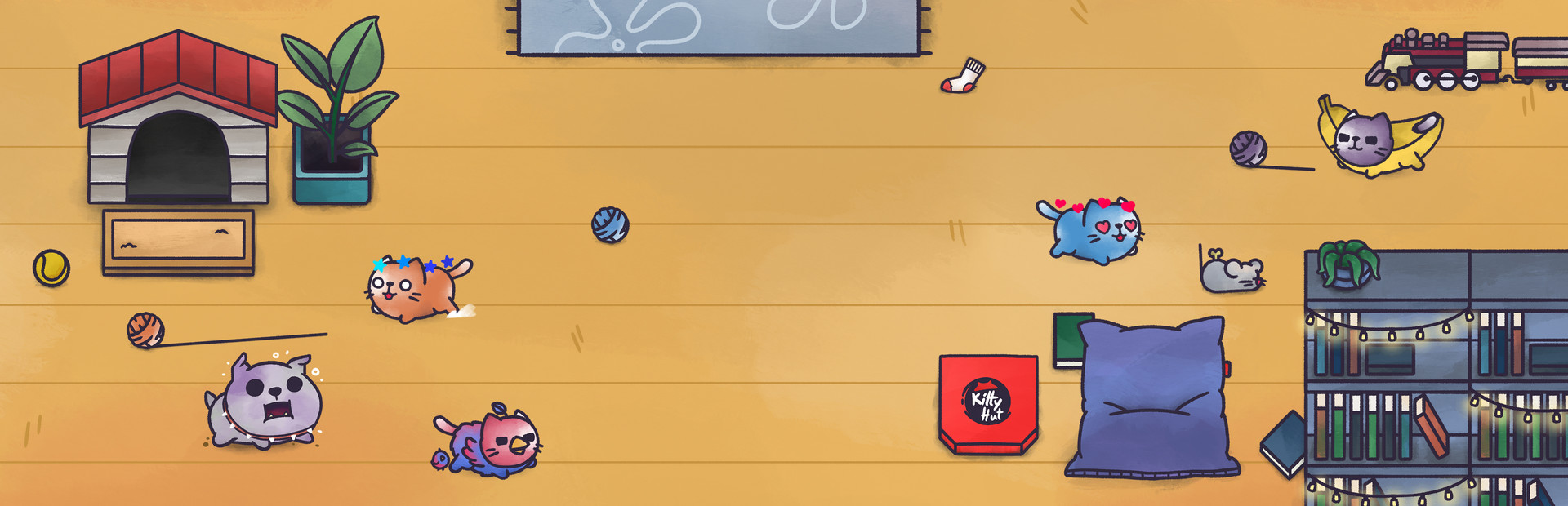 Every cat has its own color and ball of yarn. Don't lose sight of it and be the fastest to unwind it. Don't let the other players get ahead of you!