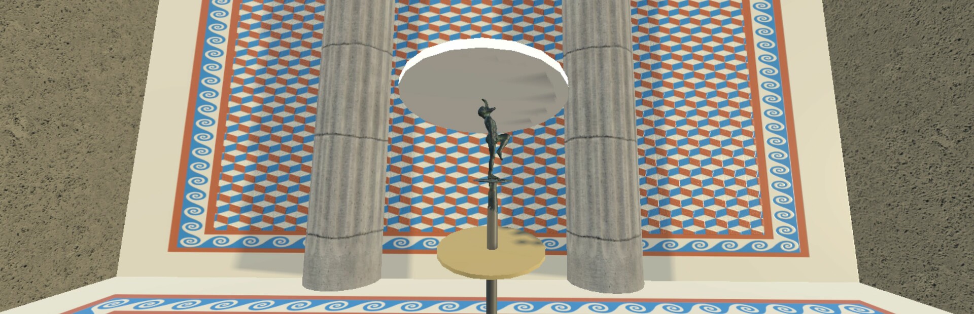This is a VR trip into the ancient world – playing Kottabos, the all-time favorite Greek party game. All the items you see around you are 3D reconstructions of actual ancient furniture, pottery, and Kottabos targets from museums. This historical game is harder than it looks!