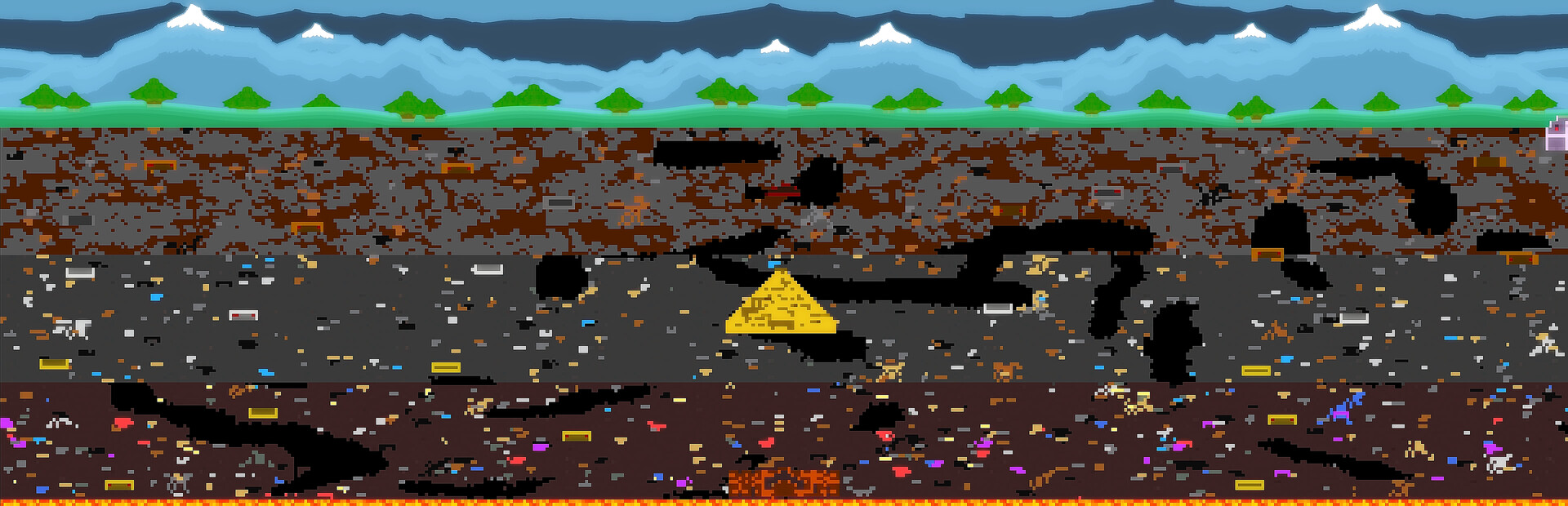 Dig your way through different layers to discover unique structures and collect resources. Craft your way to the space age by upgrading your tools with better resources, and craft machinery to help you automate the process of smelting and crafting.