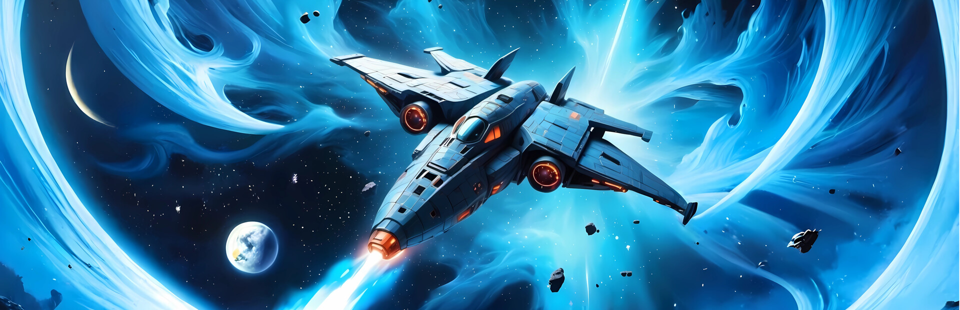 - Choose a spaceship with unique weaponry and stats