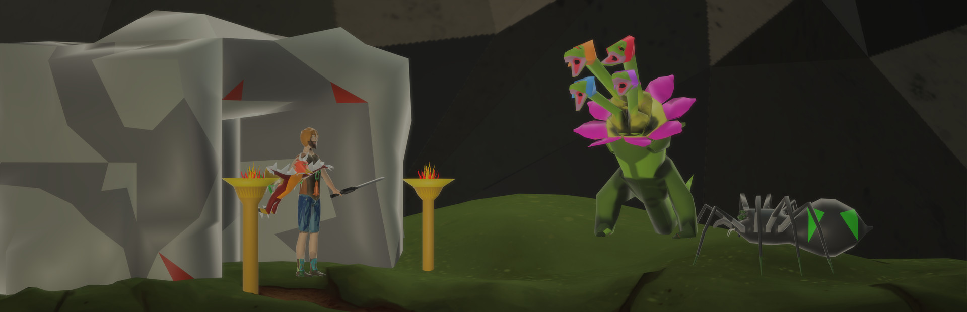 A first-person dungeon crawler with a procedurally generated open world.