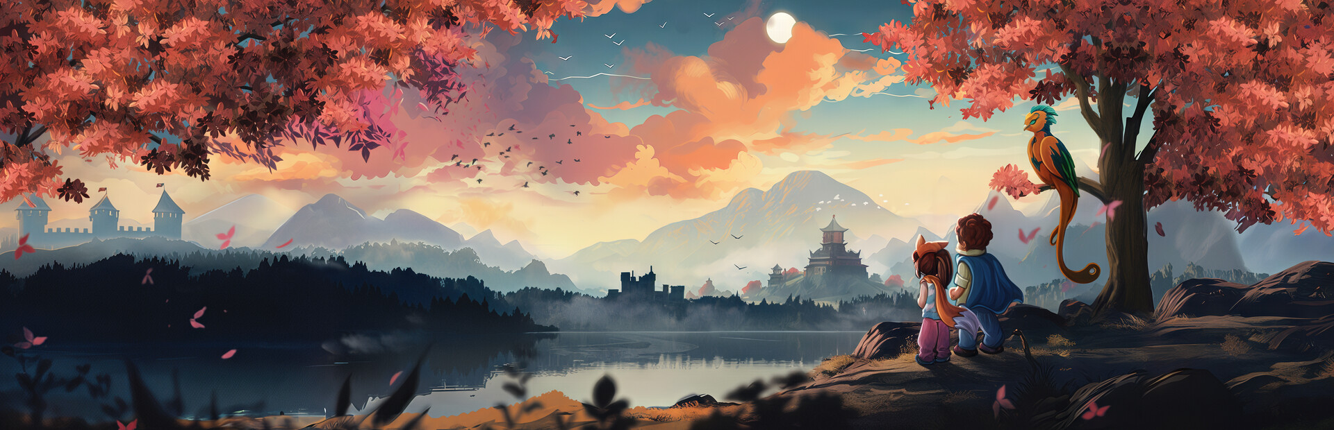 Inspired by Miyazaki, the art style merges soft, painterly backgrounds with simplified, memorable characters and fluid animations. Each frame is crafted meticulously with pride - specific lighting techniques, thoughtful composition, and immense attention to detail mean that every single moment you'll spend playing Lost Twins 2 will be a feast for the eyes. The original musical score is atmospheric, soothing, and thematic to complement the art style.