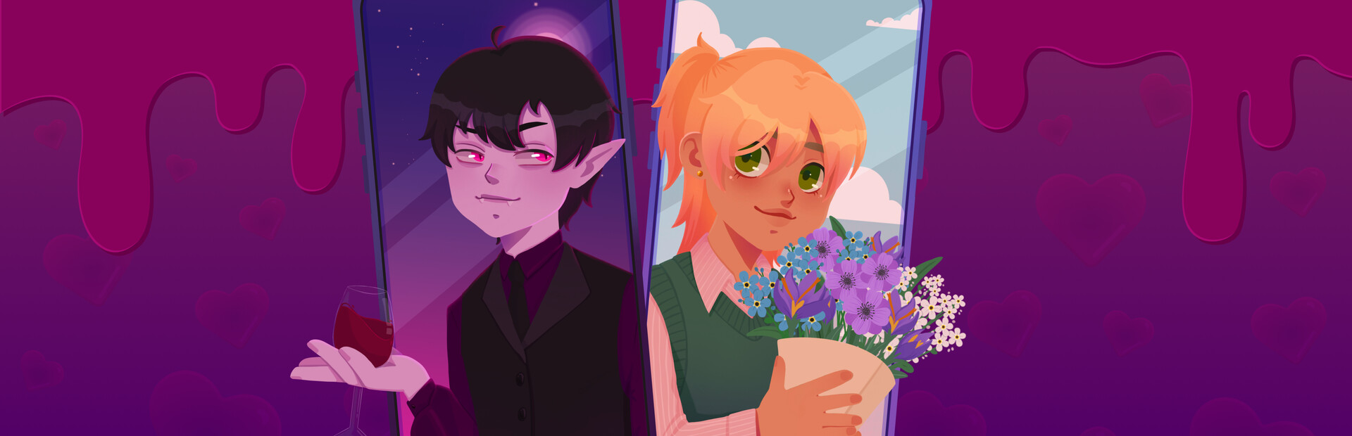 Immerse yourself in a dating sim with a focus on narrative and investigation. Where you are living the life of a vampire surviving through online dating. Swipe wisely, match with humans, and carefully navigate a dating app to secure dinner. Avoid fellow vampires, manage limited daily matches, and control your growing thirst.