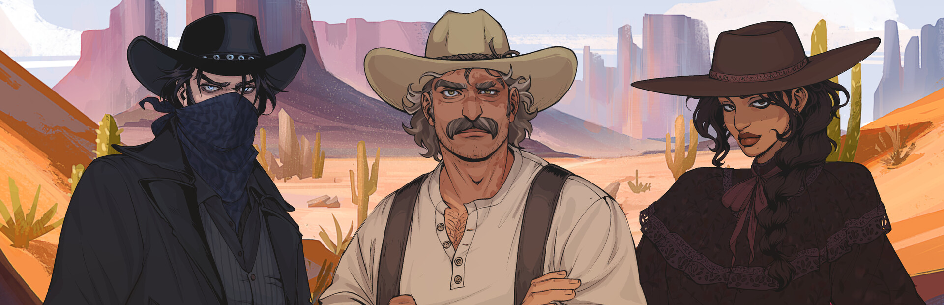 After meeting a cast of enigmatic characters, you're given a choice of who to partner up with to uncover the dark Eldritchian mystery that plagues this ill-fated town. But who do you choose? The Cowboy, the Bounty Hunter, or the Mysterious Outlaw? What does this mean for the desperate citizens of Cortez Creek? And is romance - or death - in the cards?