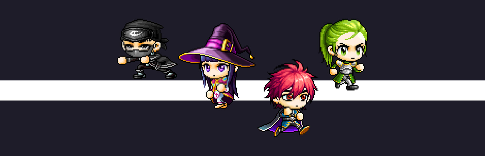 I won't hide the fact that 90% of the character images I used are from MapleStory. We have 4 main characters belonging to different classes, all customized from Maple Studio's character creation system. Most of the monsters are also taken from Maple Studio, but there are about 12 other monsters that I modified from external sources to make them friendly and suitable for young players. I also drew two additional characters, a fruit tree, and a guarding tower, but they are all simple.