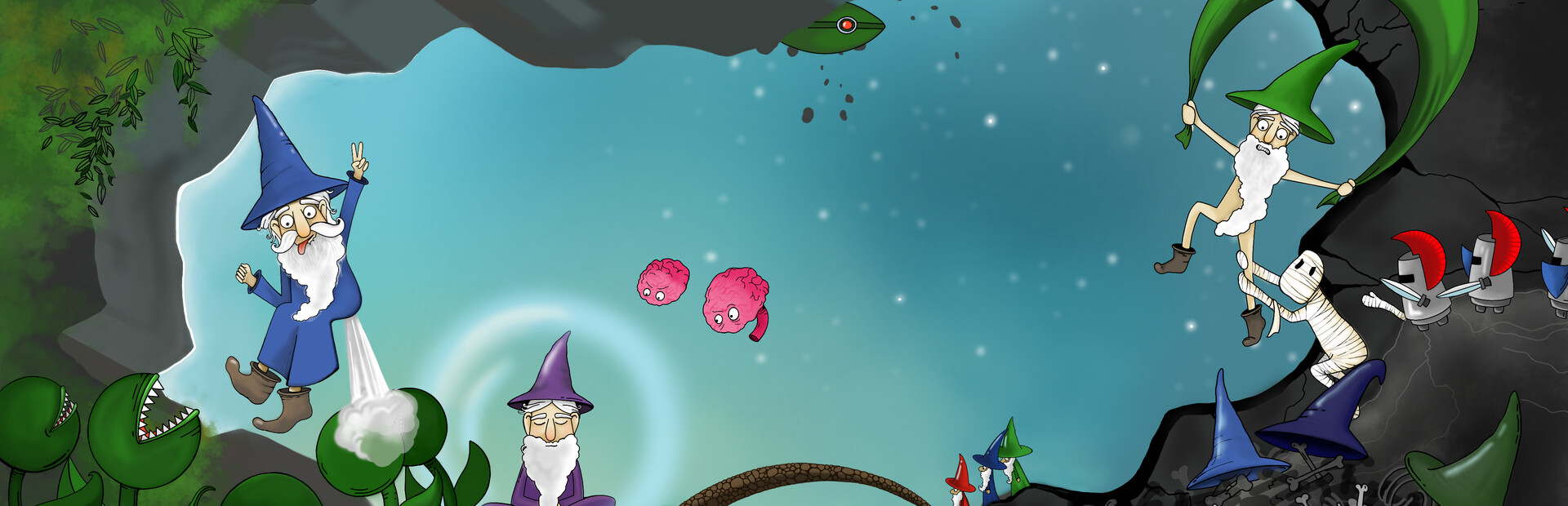 Normal mode with more wizards to start with. Challenge yourself with the Highlander mode where you only have one wizard the whole run.
