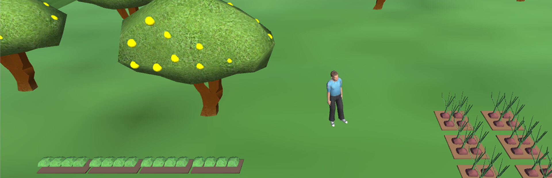 Your main character have a garden with lemon trees, onion plants, garlic plants, parsley plants. You can gather these resources unlimited.
