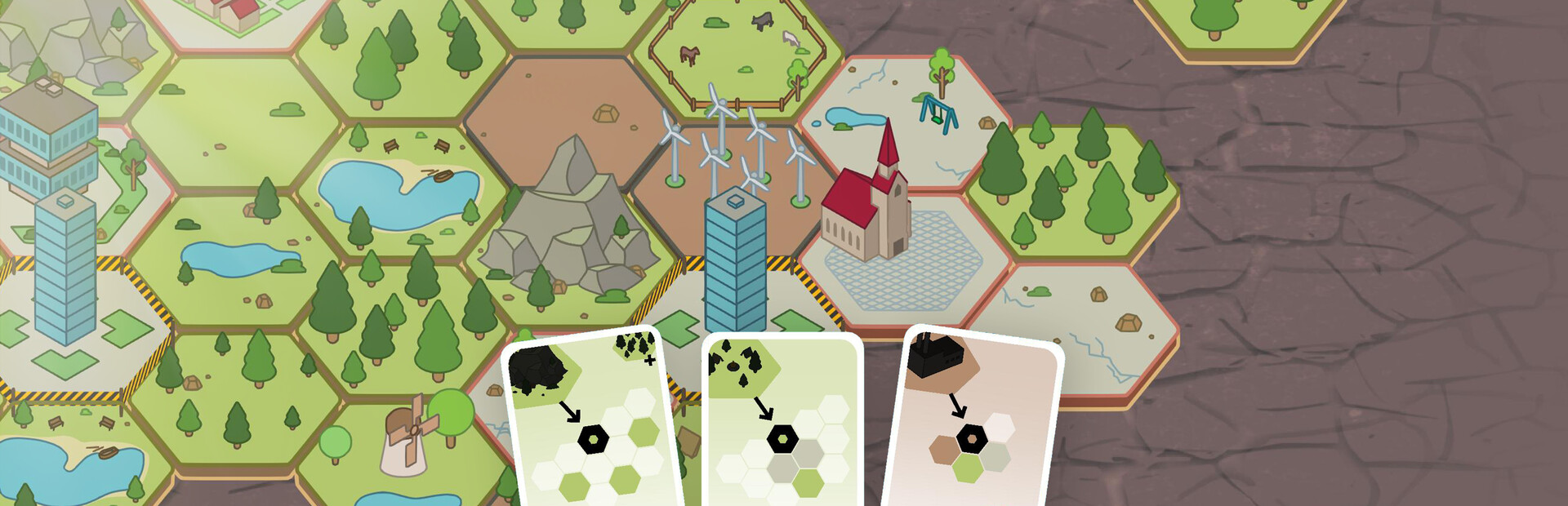 - Place cards to build a vibrant village or city