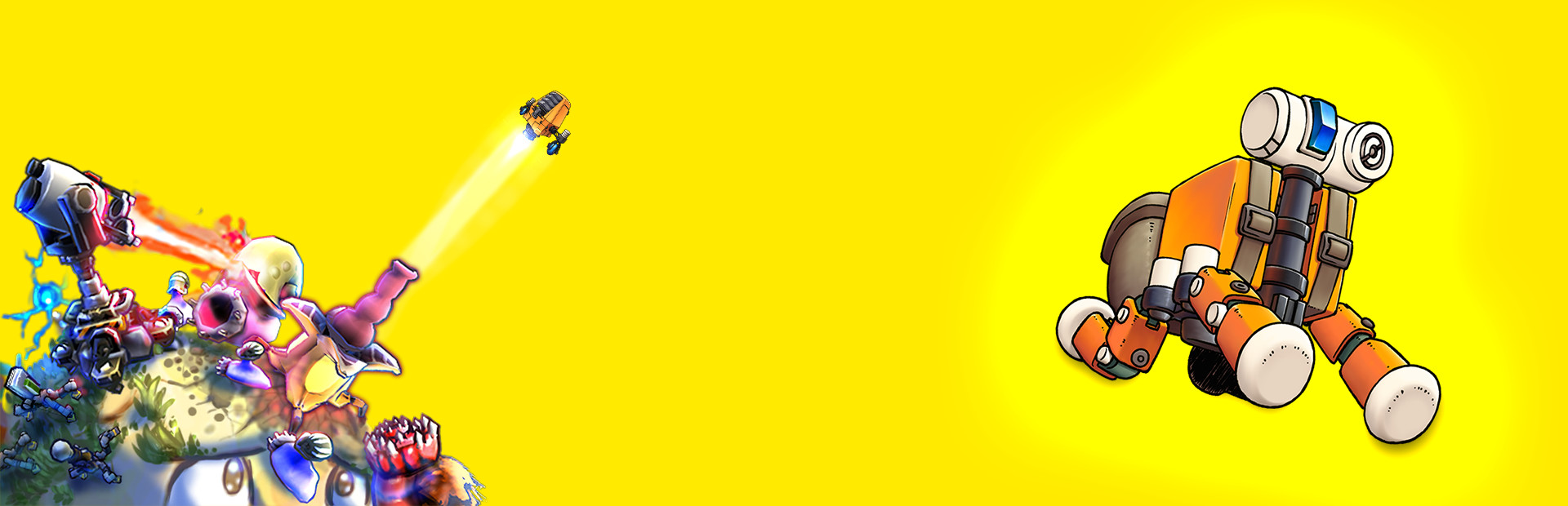 Upgrade your little farming robot into a BATTLE STATION, herd a flock of doggy bots, listen to giant lasers talking back at you, plant many many trees to cover the land with boosting bliss and collect outfits for your robot!