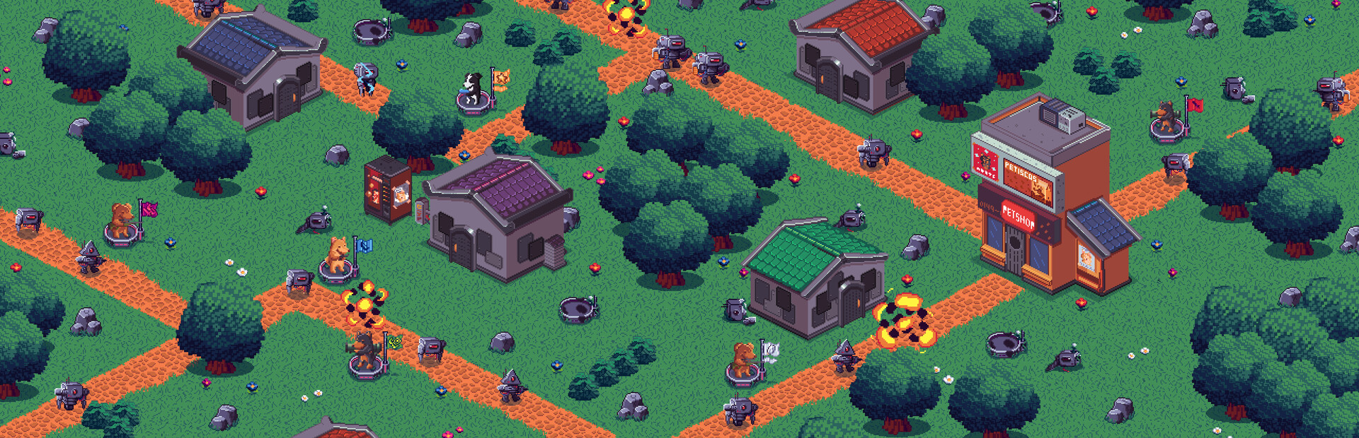 Each match presents new challenges with maps that expand as you progress. The key to success is using the unique abilities of the EvoDogs and leveraging the procedural terrain expansion to create effective defenses.