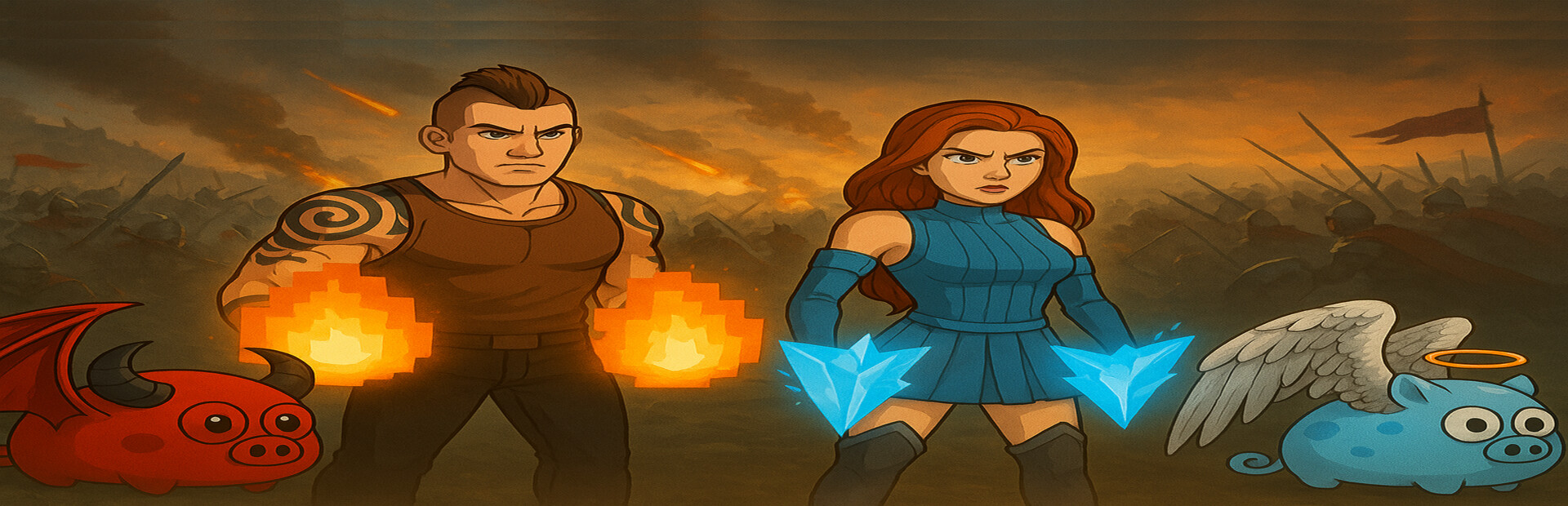 Raise and enhance pigs with special powers to fight alongside you.