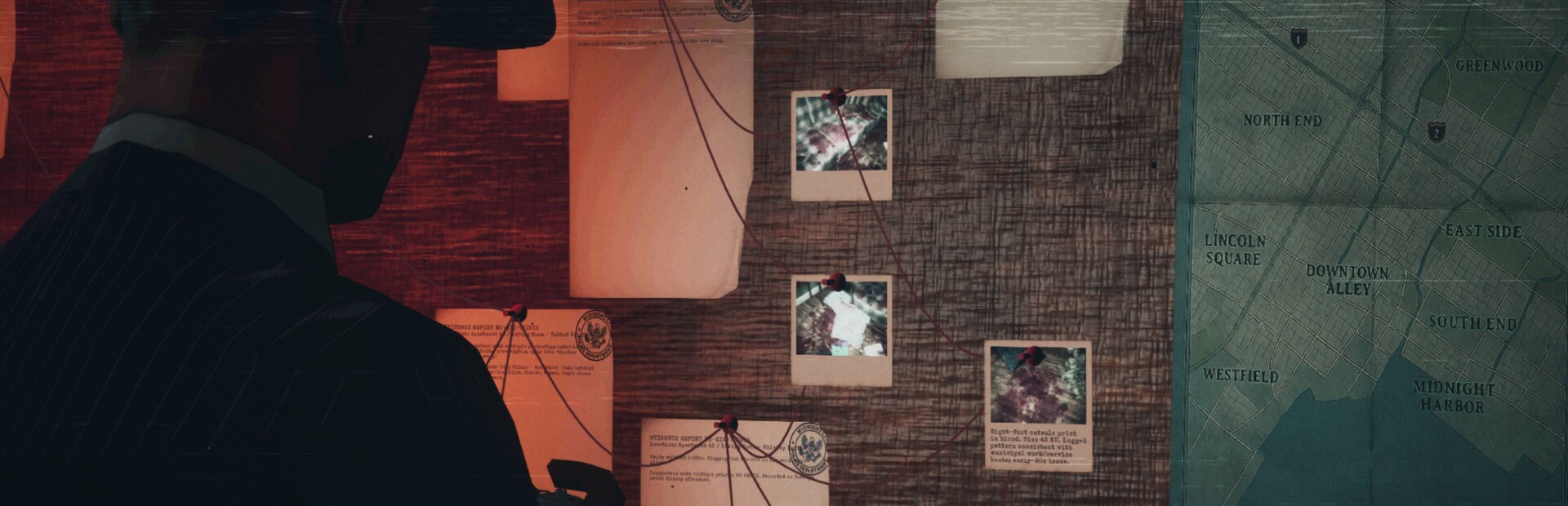 - Detective board – connect evidence into logical threads and identify the killer and the next crime scene.