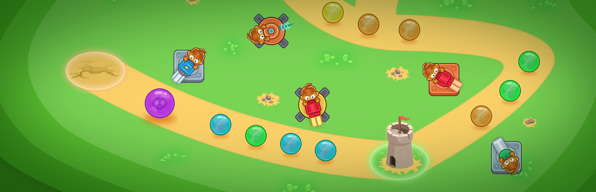 Get ready to hire monkeys to defend the base from waves and waves of bubbles in this top-down tower defense game!