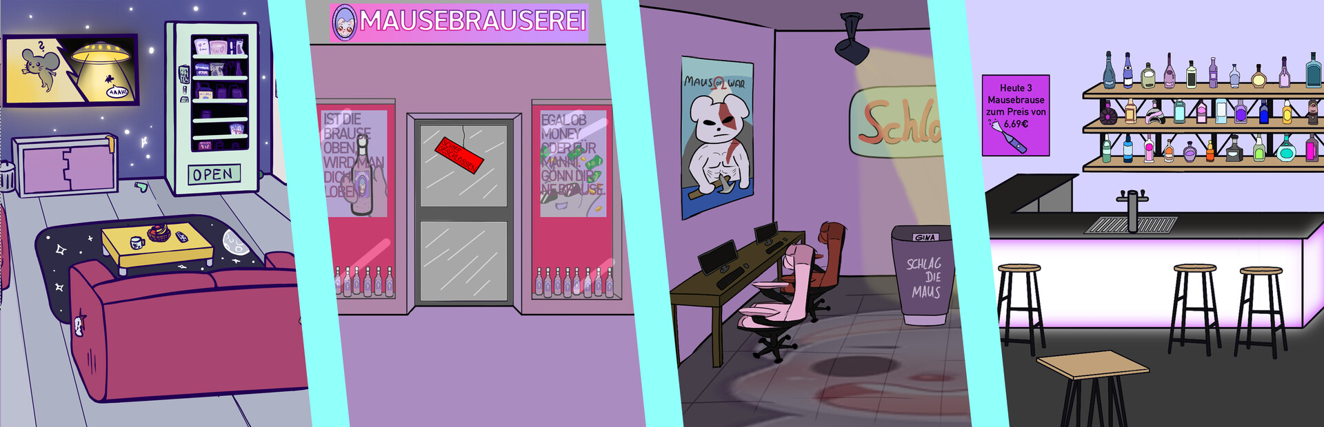Begleite Sie auf Ihrem Weg und Klick dich durch Raumschiffe, Kaufhäuser und Gassen, doch Vorsicht: Es wird Cringe!