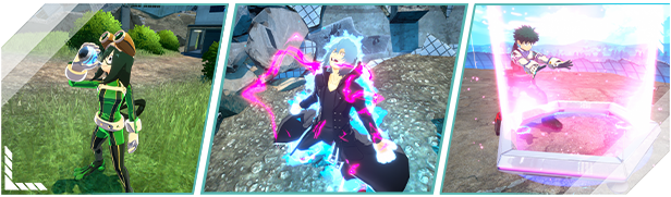 Leap into the fray with your fellow heroes...and villains! Use communication, tactics, and synergize Quirks with your team of 3 to be the last ones standing in this 24-player Battle Royale!