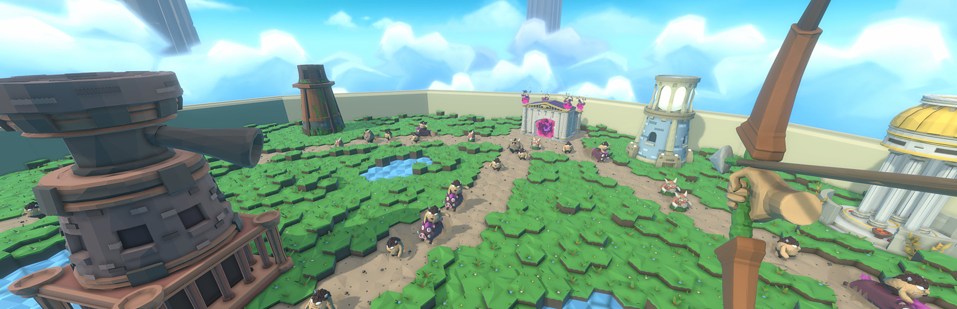 Grab your bow, teleport to the tower giving you the best angle of attack, aim, and unleash a rain of physically based arrows onto your opponents: the more you pull the string, longer the arrow will be fired, so aim correctly and manage the pulling!