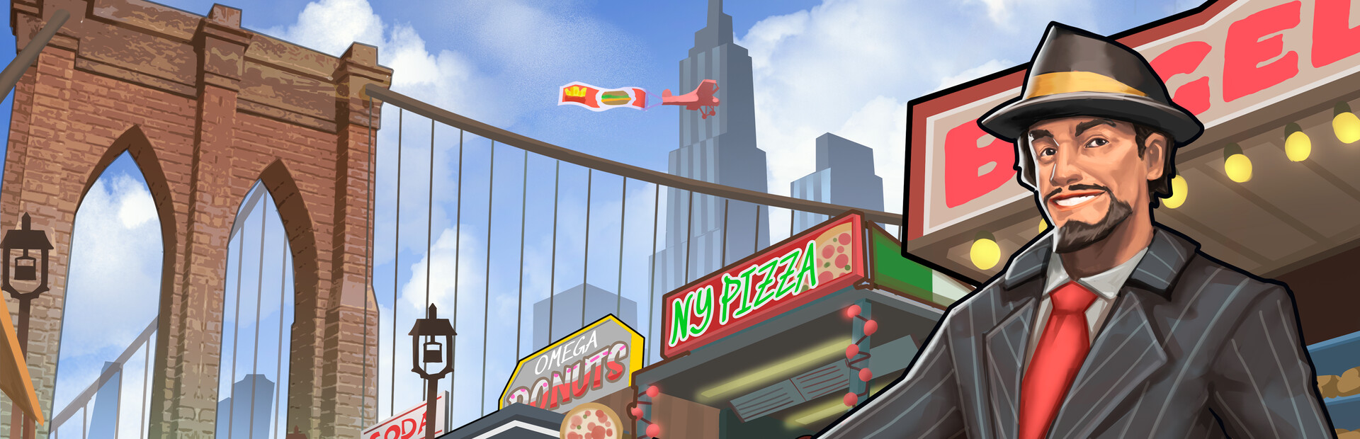 New York City just turned the Brooklyn bridge into a park, and the visitors are in desperate need of food! Now’s your chance to make it big in the Big Apple! Build food booths, grow produce, or locally source ingredients until you're the only competition left in New Brooklyn Bridge Tycoon!