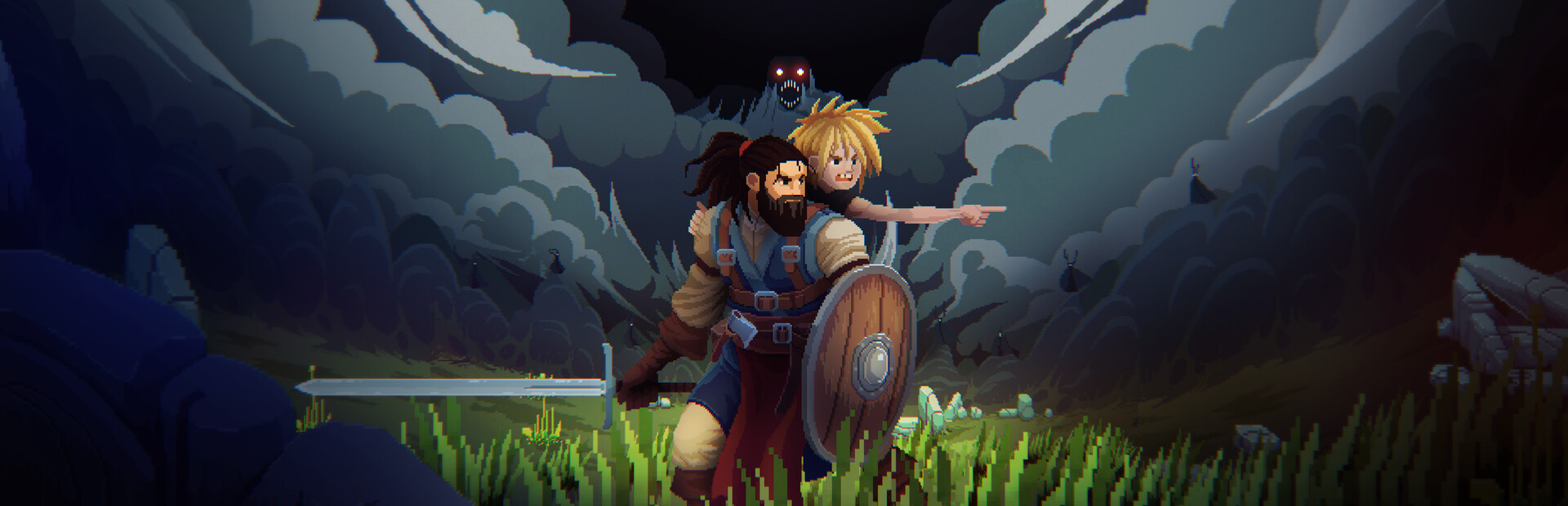 A captivating blend of the low fantasy setting and achingly detailed pixel art makes Dewr's decrepit world croak with breathtaking life as Thorn carves his path through it. Every second that passes in No Place for Bravery pulses with an immersive, intense atmosphere that you’ll feel in your veins.