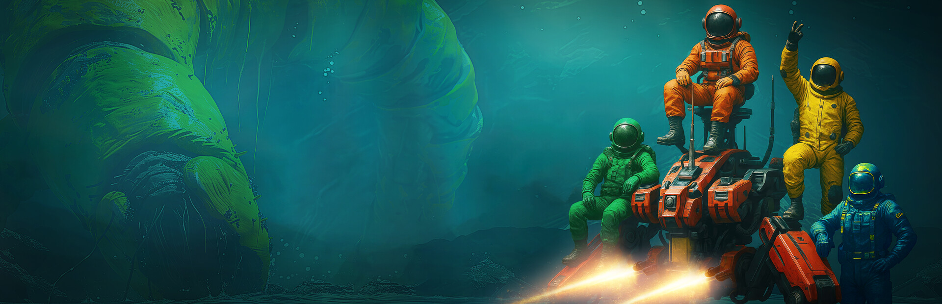 Mine resources from the ocean depths to unlock and upgrade powerful gear. Choose from 9 unique weapons – each with its own range, strengths, and playstyle. Don’t forget to coordinate with your team and plan your loadout beforehand: strategic positioning is key to protecting your Mech and surviving the endless waves.
